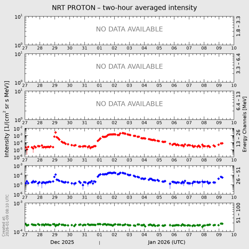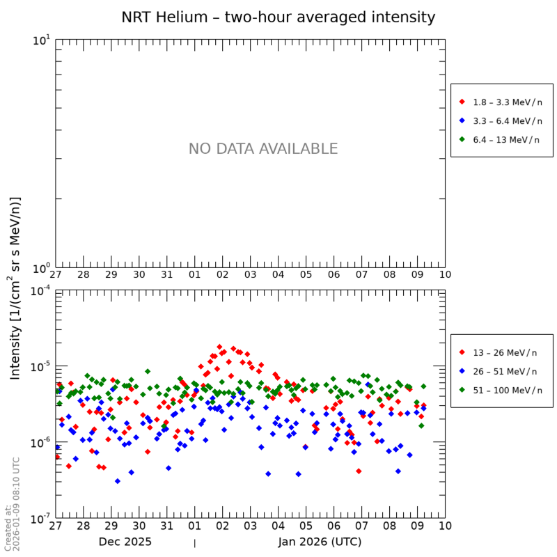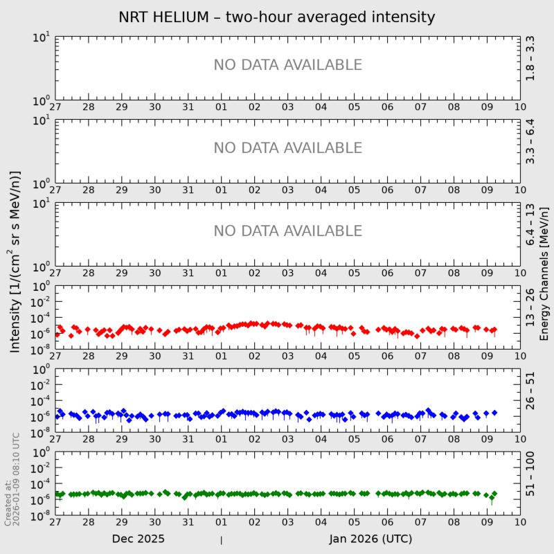 SOHO/ERNE NRT Two-Hour Averaged spectra graphs and intensity text files: